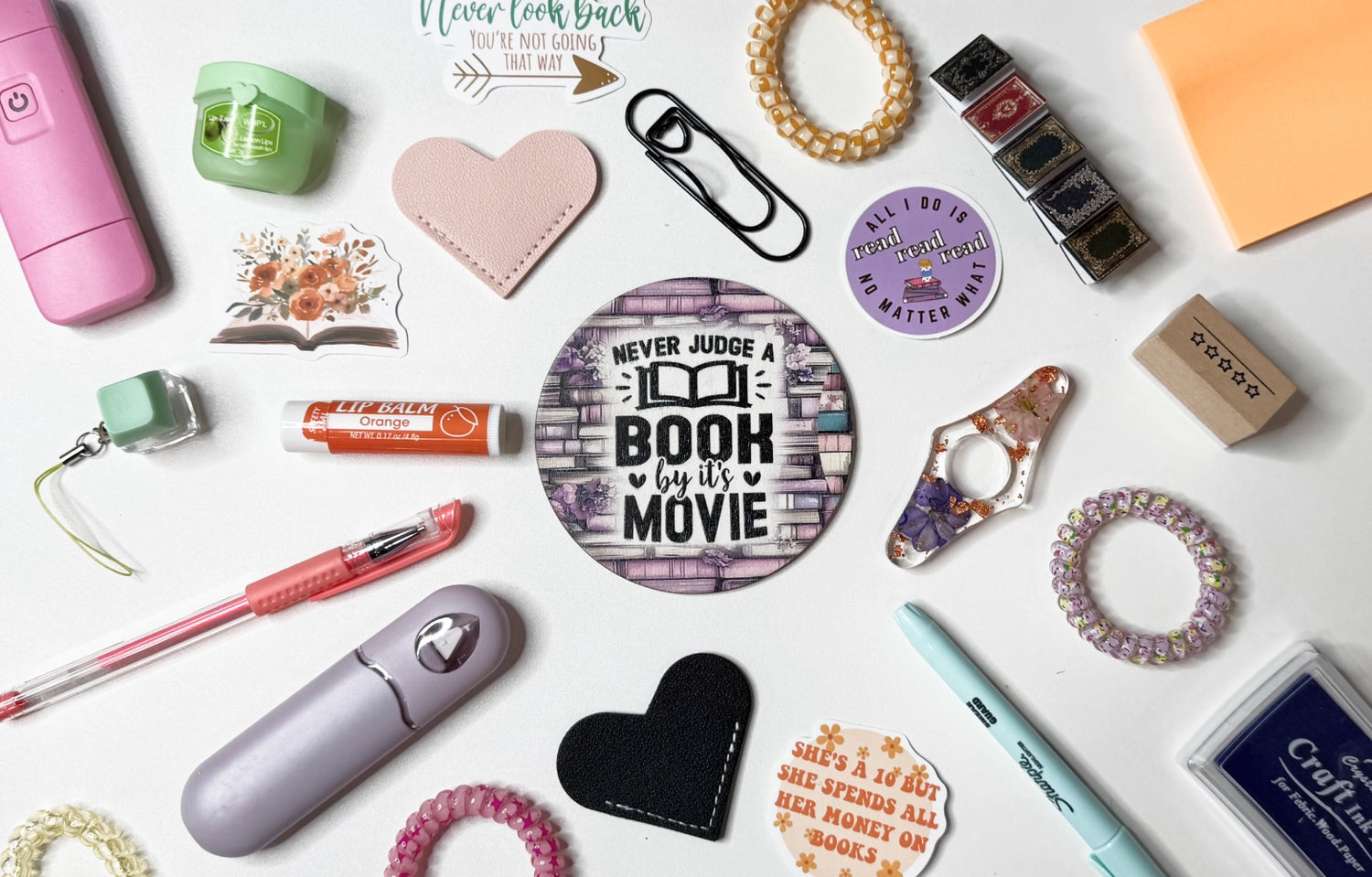 A bookish bundle is a curated collection of accessories and tools for book lovers. Each bundle is personalized with themes and colors you choose.